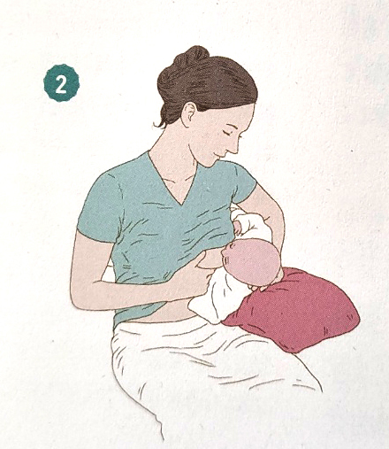 2 수유하고자 하는 쪽의 팔에 아기의 머리를
