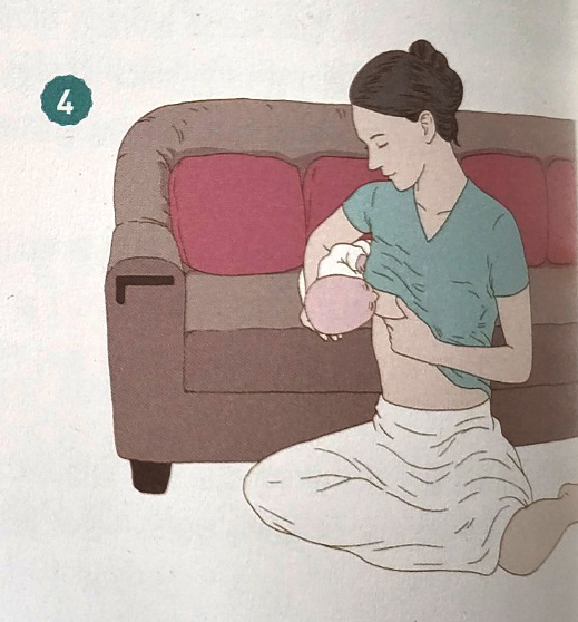 4 팔꿈치로 아기 몸을 엄마 쪽으로 붙인다.