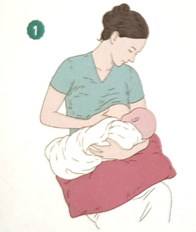 젖을 먹이는 방법이다. 쿠션이나 베개로