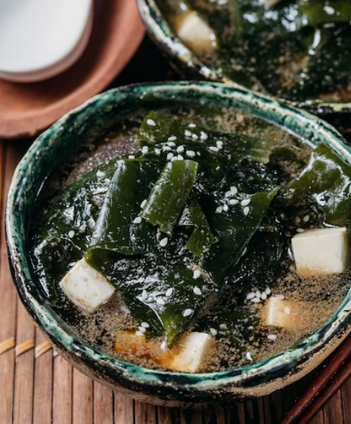 쌀밥에 미역국, 백설기, 삼색나물 등으로